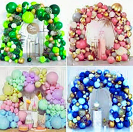 1. Arcos de Globos: Los arcos de globos son ideales para entradas o fondos de fotos. Pueden ser de un solo color o combinar varios colores para un efecto más impactante.