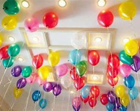 4. Globos con Helio: Los globos con helio pueden flotar en el techo o atarse con cintas para crear un cielo de globos. Puedes colgar fotos, tarjetas o pequeños adornos de las cintas.