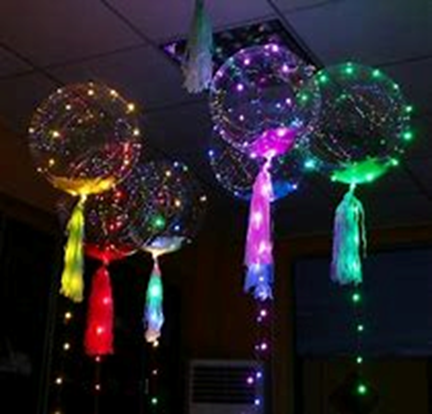 7. Globos con Luces LED: Coloca pequeñas luces LED dentro de los globos para un efecto luminoso y mágico, ideal para eventos nocturnos.